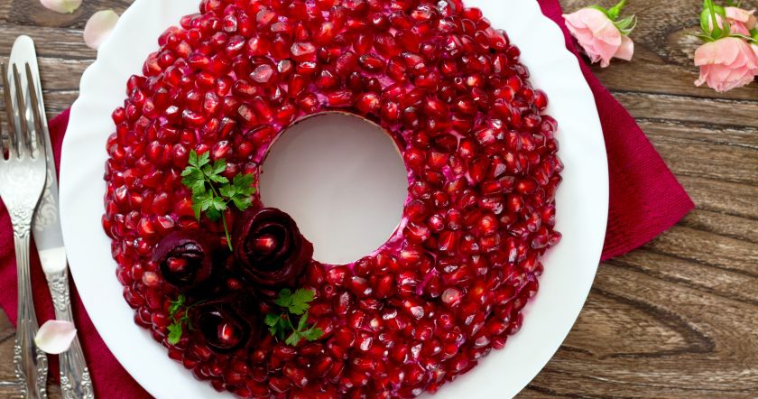 Салат гранатовый браслет получился красивым, ярким и вкусным.