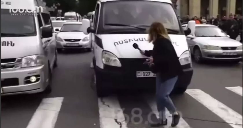 Полицейская "Газель" совершила наезд на журналистку издания Mediaub.am Наре Геворкян во время освещения ею акции движения "Тавуш во имя Родины" на улице Абовяна, прямо у площади Республики.