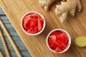 Кусочек селёдки, солёный огурец, пару ломтиков брынзы или другого рассольного сыра, ложку риса, щедро приправленного соевым соусом.