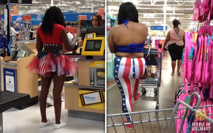 Уж лучше мы на пляж в вечернем платье и в брюликах будем ходить, чем, как они, в магазин в таком виде, правда? ;)