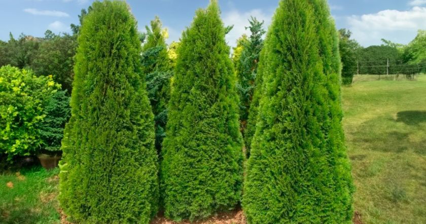 Во-первых, следует соблюдать безопасное расстояние между туей и жилыми постройками. Мощная корневая система этого растения может нанести существенный урон фундаменту, поэтому минимальное допустимое расстояние от дома должно составлять не менее трех метров.