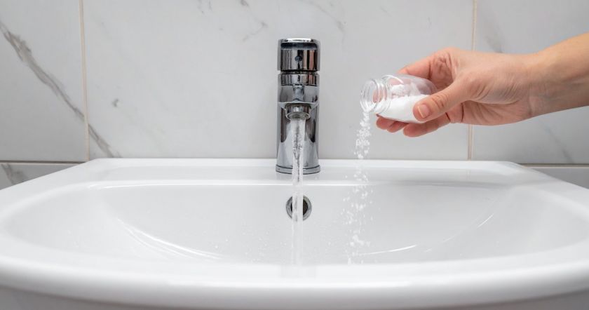 Во-вторых, для очистки раковины от неприятного запаха используется следующий метод: один стакан обычной поваренной соли засыпается в сливное отверстие, после чего добавляется примерно полстакана горячей воды. Важно отметить, что температура воды не должна превышать 65 градусов, поскольку использование кипятка может привести к повреждению труб. Такая предосторожность поможет сохранить целостность сантехнической системы на долгое время.
