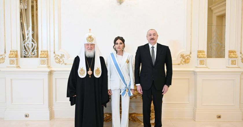Вчера президент Азербайджана Ильхам Алиев и первая леди Мехрибан Алиева встретились с Патриархом Московским и всея Руси Кириллом, сообщили в пресс-службе главы государства.