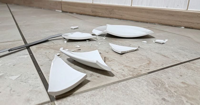 Начинать уборку разбитой посуды следует с удаления крупных фрагментов. Их можно аккуратно собрать руками, предварительно надев защитные перчатки для предотвращения порезов. Альтернативный вариант — использование веника и совка для первичного сбора заметных осколков. Важно действовать осторожно, чтобы не раздробить крупные куски на более мелкие, усложняя тем самым дальнейшую уборку.