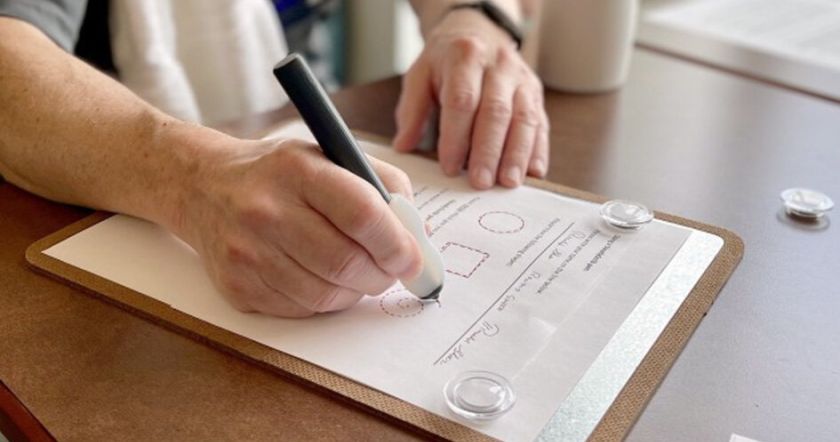 Магнитные частицы встроены в силиконовый наконечник ручки и содержатся в чернилах. Во время письма они генерируют электрические сигналы.