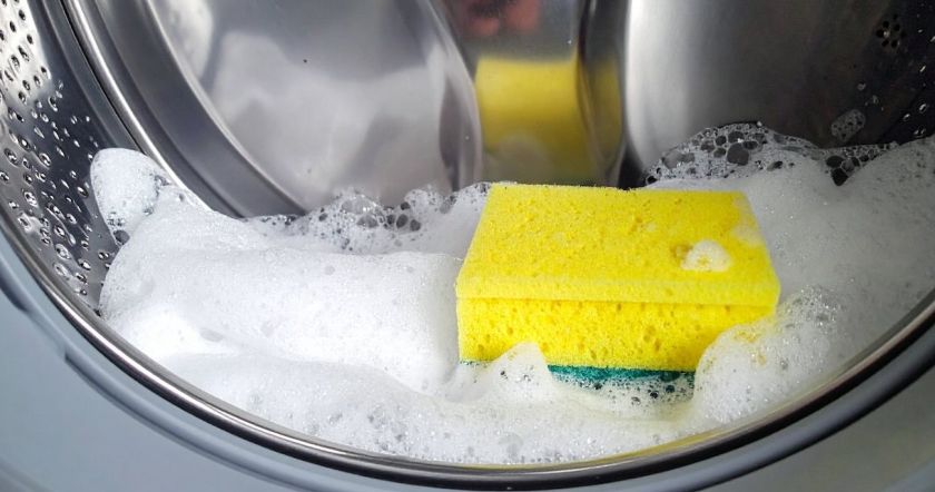 Основа техники заключается в использовании кухонной губки во время машинной стирки. Поролоновая структура изделия создает особые условия в барабане стиральной машины: