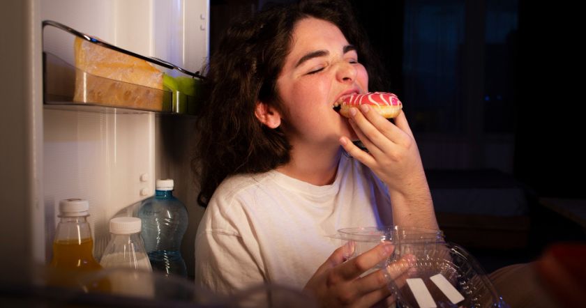 Проанализировав результаты и сделав поправку на возраст, пол, продолжительность сна и общее потребление энергии, исследователи обнаружили, что поздний суточный прием пищи – потребление большей части калорий на несколько часов позже нормы – приводит к ухудшению чувствительности к инсулину, чем у тех, кто ел ближе к своему временному интервалу по отношению к биологическим часам. Те, кто ел поздно, также имели в среднем более высокий индекс массы тела (ИМТ) и большую окружность талии – оба показателя ожирения.