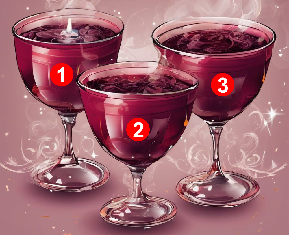 Сегодня у вас есть шанс заглянуть чуть дальше в ближайшее будущее и узнать, какой подарок приготовила для вас жизнь. Перед вами три бокала с напитком. Каждый из них — это символ вашего сюрприза.