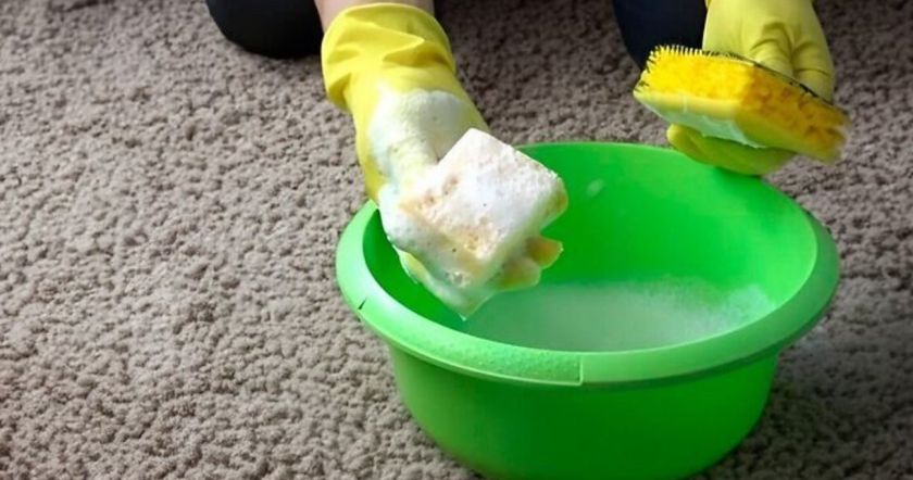 Во-вторых, грязевые следы от обуви удаляются поэтапно. Сначала пятно полностью высушивается, затем сухие частицы убираются пылесосом. После механической очистки используется мыльный раствор для окончательного устранения загрязнения.