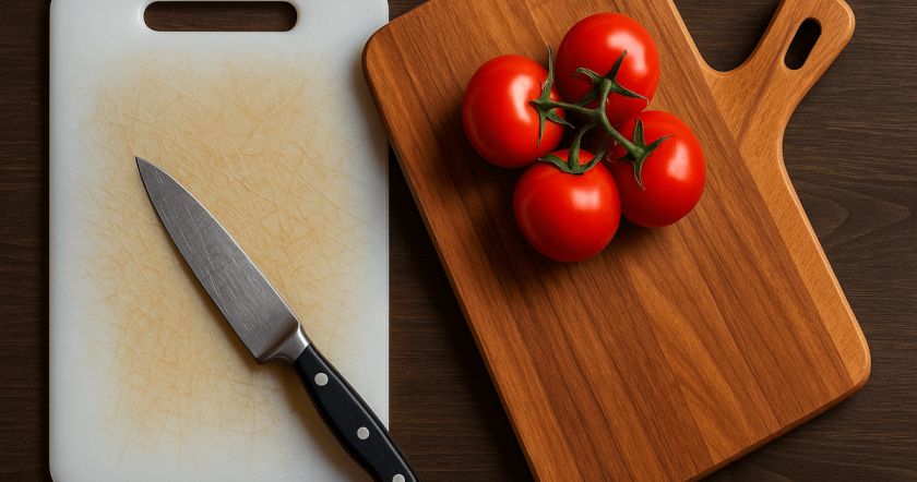 При одинаковой нагрузке качественная деревянная доска прослужит дольше и сохранит внешний вид при правильном уходе. Пластик подойдёт как дополнительный вариант, особенно для сырых продуктов, но рассчитывать на многолетнюю службу от него не стоит.