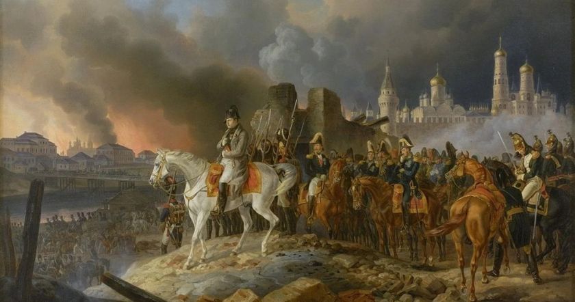 Вторжение началось в июне 1812 года с армией до 600 тысяч человек. Но русские полководцы Кутузов и Барклай де Толли избегали прямых сражений, отступая вглубь страны и уничтожая припасы. Когда Наполеон достиг Москвы в сентябре, город был эвакуирован и и в нем начался пожар. Не получив мирного предложения от царя Александра I и понимая, что приближается зима, император отдал приказ об отступлении в середине октября.