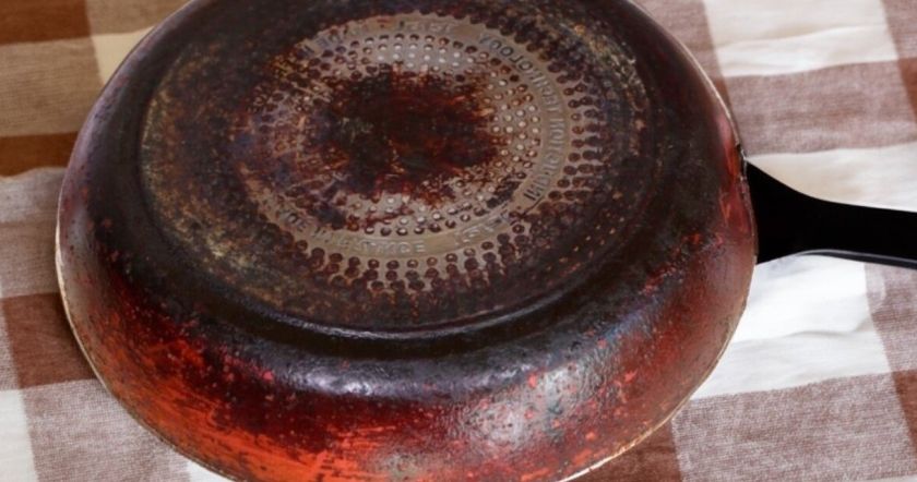 Наиболее действенным способом считается обработка уксусом. Сковороду заливают уксусной кислотой и доводят до кипения на плите, затем оставляют на несколько часов для размягчения загрязнений.