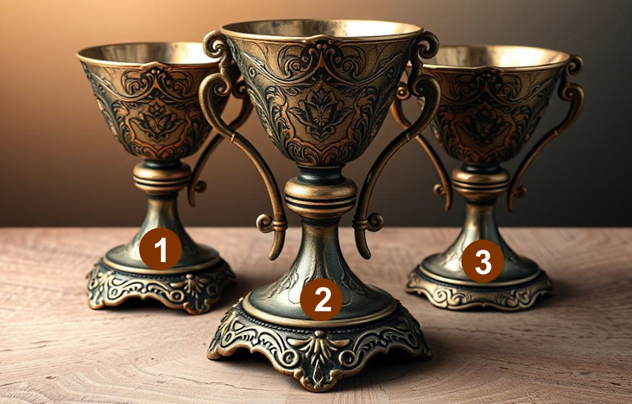 Сегодня я предлагаю вам пройти небольшой тест по картинке. Перед вами три старинных кубка с номерами 1, 2 и 3. Ваша задача — выбрать тот кубок, который привлек ваше внимание в первую очередь. Ваш выбор расскажет, насколько вы доверчивы и как относитесь к людям вокруг.