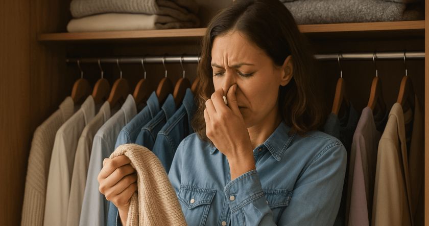 Неприятный запах в шкафу почти всегда результат влаги и отсутствия вентиляции. Стоит наладить проветривание и убирать только сухие вещи — и одежда снова будет пахнуть чистотой.