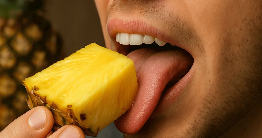 Дополнительно действует кислотность ананасового сока: уровень pH у него около 3,2–4,0. Кислота раздражает оголённую слизистую ещё сильнее, особенно если во рту есть микротрещинки.