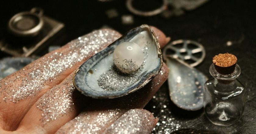 Перламутр – это сложный материал. Его основа – кальций в кристаллических формах арагонита и кальцита. Скрепляют их белки, образующие вещество конхиолин. Именно сочетание минералов и органики придает жемчугу характерный блеск.
