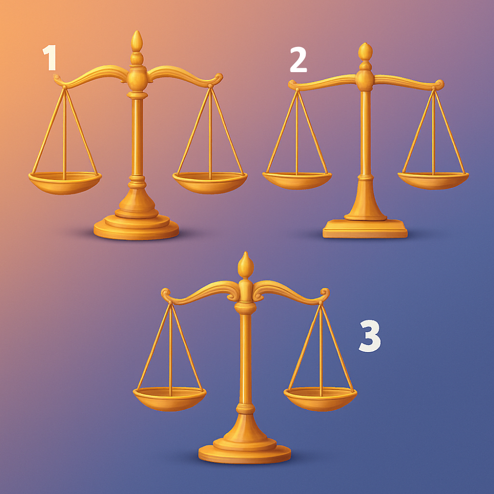 Этот простой тест поможет вам взглянуть на себя со стороны. Перед вами три изображения весов. Посмотрите на них внимательно и выберите те, которые вам больше всего нравятся: №1, №2 или №3. Выбор делайте интуитивно. Ваш ответ расскажет, насколько вы честны на самом деле и как это качество проявляется в вашей жизни.