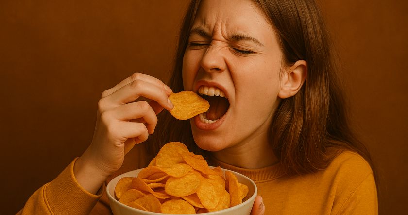 При поедании чипсов в мозге выбрасывается дофамин, гормон удовольствия. Каждая хрустящая пластинка — как маленькая победа, и мозг хочет повторить ощущение снова.