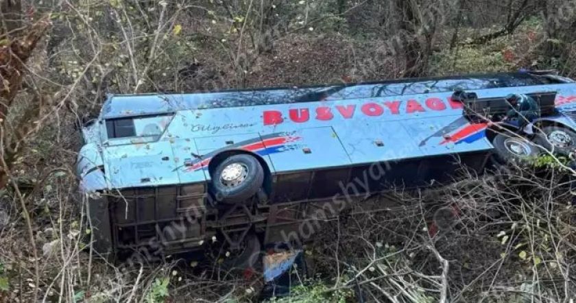 Как сообщили в компании BusVoyage Новости Армении-NEWS.am, по предварительным данным, обрушилась земляная насыпь, в результате чего автобус перевернулся.