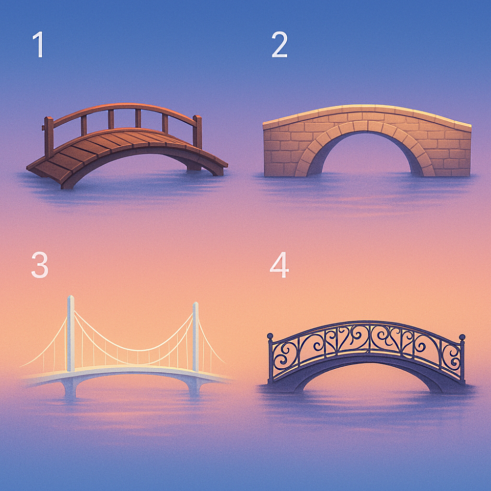 Перед тобой четыре мостика. Каждый из них хранит свой смысл и расскажет, что именно связывает тебя с тем, кого ты не забыл. Выбери один — тот, который откликнется внутри. Не спеши. Просто посмотри и почувствуй.