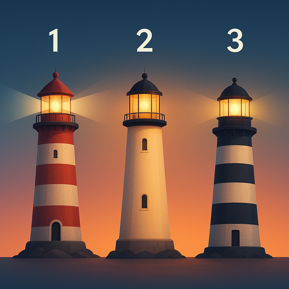 Жизнь часто похожа на море: волны обстоятельств то уносят нас вдаль, то возвращают обратно. Порой кажется, что впереди лишь туман, и мы не знаем, куда двигаться. Но у каждого есть свой маяк судьбы — тот самый внутренний свет, который помогает не сбиться с пути. Этот тест подскажет, насколько ясно ты видишь свой путь. Просто выбери один маяк, который сразу привлёк твоё внимание.