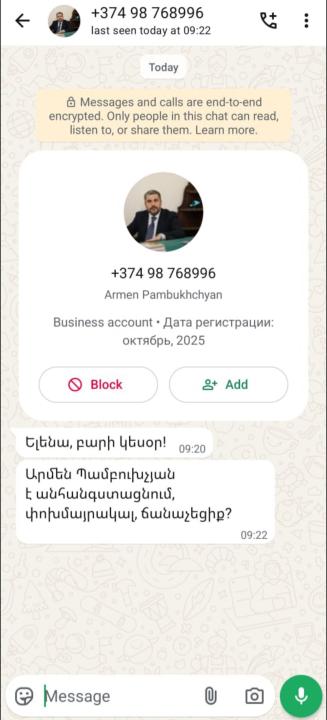 На моё имя открыт аккаунт WhatsApp с другого номера телефона. Вы можете получать сообщения, которые кажутся отправленными мной, но это не я