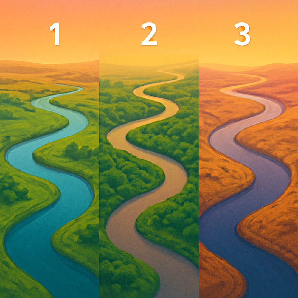 Посмотрите на три изображения рек. Их изгибы, форма течения, настроение могут рассказать многое о том, что происходит внутри вас. Выберите ту реку, к которой интуитивно потянулась ваша душа, и узнайте, что скрывается за её извивами.