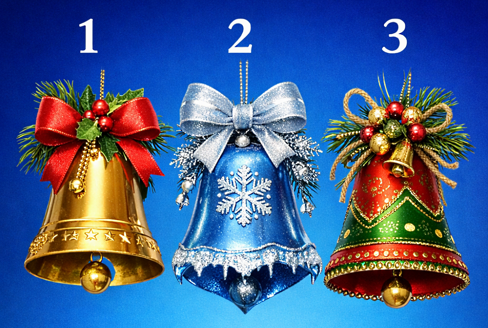 Новый год – время перемен, неожиданных событий и маленьких чудес. Каждый из нас с нетерпением ждёт наступления этого праздника, предвкушая, что принесёт следующий год. Сегодня мы предлагаем вам необычный способ заглянуть в будущее. На картинке перед вами три колокольчика, каждый из которых отличается цветом, формой и украшением. Выберите один из них интуитивно, не задумываясь слишком долго, и получите небольшое предсказание о том, что ждёт вас в наступающем году.