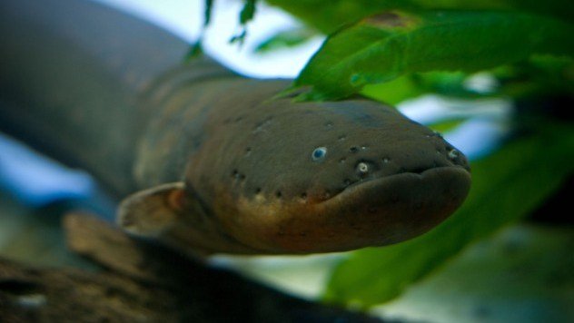 Электрические угри на самом деле находятся в более тесном родстве с сомами, чем с другими угрями, но вы наверняка не захотите приблизиться к ним достаточно близко, чтобы убедиться в этом самостоятельно. Они дорастают до 2,5 метра в длину и могут вырабатывать электрические разряды при помощи особых электрических органов, расположенных вдоль их боков. Эти разряды могут достигать 600 вольт, что в пять раз больше мощности среднестатистической американской розетки, и достаточно для того, чтобы сбить лошадь с ног. Несмотря на то, что одного разряда не достаточно, чтобы убить здорового взрослого человека, многократные удары могут привести к сердечной или дыхательной недостаточности, и случаи, когда люди теряли сознание и утопали после атаки электрического угря, не так уж редки. Многие исчезновения людей, зарегистрированные вблизи реки Амазонка, связывают с атаками угрей, которые оглушили людей разрядами электричества и оставили утопать в водах реки. К счастью для нашего вида, несмотря на то, что угри плотоядные, они, как правило, придерживаются диеты из рыб, амфибий, птиц и мелких млекопитающих. Они обнаруживают добычу, посылая небольшие, 10-вольтовые разряды при помощи своих электрических органов, и обнаружив её, убивают, выпуская сильные разряды.