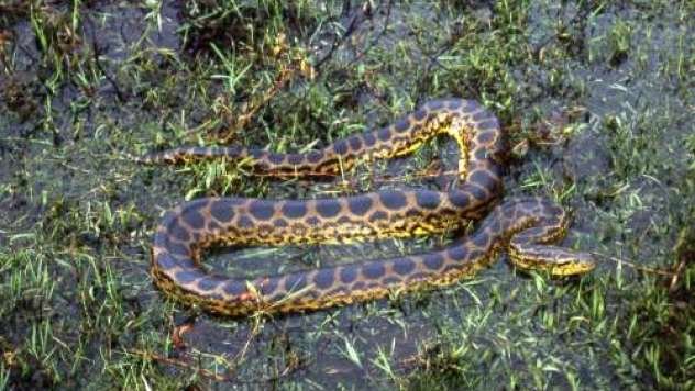 В продолжение темы о гигантских рептилиях, представляем вашему вниманию самую крупную змею в мире, обитающую в реке Амазонка – анаконду. Несмотря на то, что длина тела сетчатых питонов может быть больше, анаконды гораздо тяжелее. Самки анаконд, как правило, больше чем самцы и могут весить до 250 килограммов. Длина тела анаконды может составлять около 9 метров, а диаметр тела может достигать 30 сантиметров. Они не ядовиты, но используют свою внушительную мышечную силу для того, чтобы сжимать и душить своих жертв, к которым относятся капибары, олени, кайманы и даже ягуары. Предпочитая мелководья, позволяющие им подкрасться к их добыче, они, как правило, обитают не в самой реке Амазонка, а в её ответвлениях.