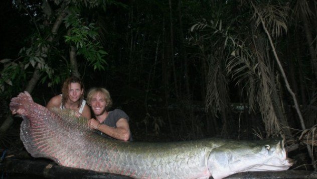 Арапаима также известная как «пураруку» или «пайче» – это гигантская хищная рыба, которая обитает в Амазонке, и прилегающих к ней озёрах. Экипированные бронированной чешуёй они без особой опаски плавают в водах, кишащих пираньями, и сами являются довольно эффективными хищниками, питающимися рыбой и время от времени птицей. Арапаимы предпочитают оставаться близко к поверхности, потому что помимо того кислорода, который они получают через жабры из воды, им ещё нужно делать глотки воздуха, поднимаясь на поверхность воды. Появляясь на поверхности, они издают характерный звук, похожий на кашель. Длина их тела может достигать 2,7 метра, а вес 90 килограммов. Эти рыбы настолько свирепы, что у них есть зубы даже на языке.