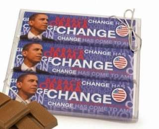 Барак Обама нередко оказывается на упаковках шоколада. Его изображение украшает плитки молочного шоколада от семейной мануфактуры Astor Chocolate. Плитка бельгийского шоколада с Обамой стоит $10. Изображение президента сопровождает слоган: «Barack Obama – change has come to America». В США за $6,5 можно купить шоколадные медальки с первым чернокожим президентом в истории страны и даже бюст из темного шоколада ($15). Эту фигурку весом всего 64 г под названием Choc-O-bama изготовили вручную.