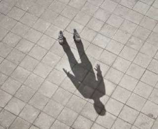 В серии работ под названием «Я не там» Пол фотографировал… обувь! Основную роль при этом играла человеческая тень, будто бы обутая в кроссовки или тапочки.