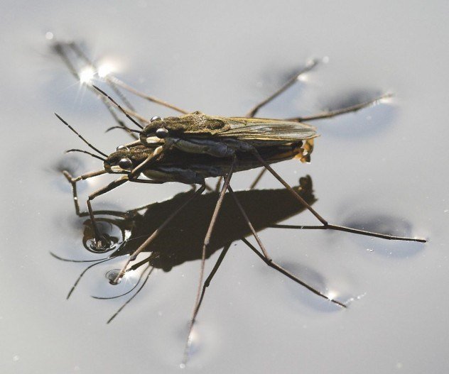 Водомерки – насекомые, обладающие уникальной способностью хождения по воде. Самцы обычно не напрягают себя традиционными ухаживаниями: просто запрыгивают на самку и предлагают смерть или спаривание. Если самка не отвечает на «ухаживание», самец создаёт на воде маленькие волны, которые привлекают хищников. Если же самка согласится на размножение, он прекращает вызывать хищников рябью на воде, чтоб они могли размножиться без помех (насколько это возможно, когда они находятся на поверхности озера, кишащего голодной рыбой).