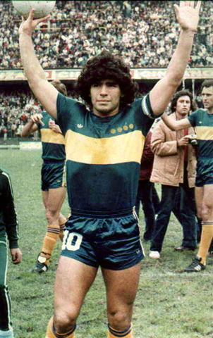 20 октября 1976 года Марадона за 10 дней до своего 16-летия дебютировал в основном составе «Архентинос Хуниорс», выйдя за 10 минут до конца встречи под номером 16 в матче чемпионата Аргентины. Несмотря на то, что «Красные жуки» проиграли тот матч клубу «Тальерес», Марадона сразу показал себя, сделав несколько проходов, а также организовал голевой момент, не реализованный Хорхе Лопесом, после которого защитнику «Тальереса» Хуану Кабрере было поручено с тренерской скамейки персонально опекать 16-летнего футболиста. Вечером после матча Марадона сказал: «В этот день я коснулся неба руками»