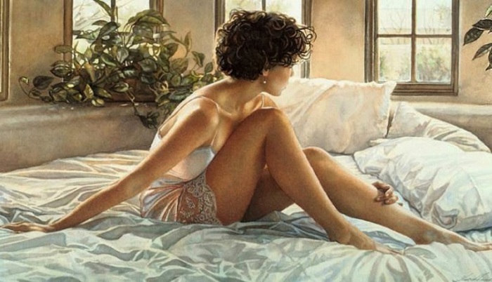 Любимые темы художника — женщины,которые отражают насыщенность и невинность.