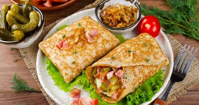 Угощай гостей ароматными блинами с зеленью, сытной начинкой и соусом, а в комментариях обязательно поделись своими впечатлениями от приготовления и поедания этого лакомого блюда. Приятного аппетита!