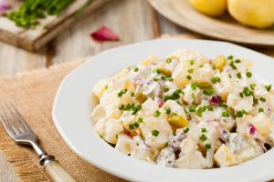 Мясной салат с картошкой под майонезом