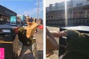 И смех и грех: голова шотландца застряла в мусорном баке (Video)