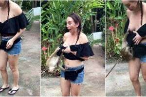 Нахальная обезьянка чуть не раздела туристку в Таиланде (Video)