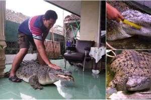 В индонезийской семье 20 лет живет 200-килограммовый крокодил (Video)