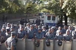 Демирчяна перекрыта полицейские в касках и с щитами (Video)