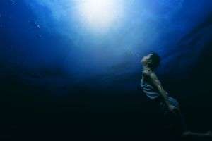 20 лет от рассвета до заката женщина в Индии сидит по шею в озере