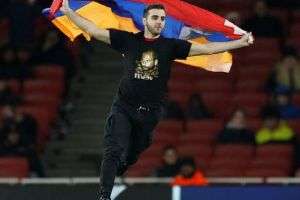 Армянин с флагом Арцаха выбежал на поле во время игры азербайджанского клуба в Англии