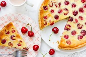 Пышный пирог с вишнями на сметане