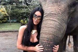 Ким Кардашьян вызвала ревность мужа нежной сценой со слоном на Бали (Photo)