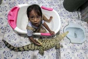 Маленькая девочка купается, играет и спит с крокодилом (Photo, Video)