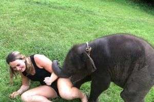Милое видео: слоненок обнимется с американской туристкой (Video)
