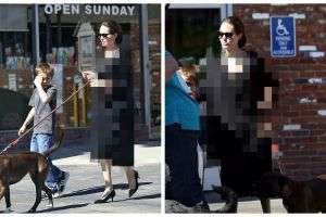Анджелина Джоли вышла на прогулку в «халате уборщицы» и без нижнего белья