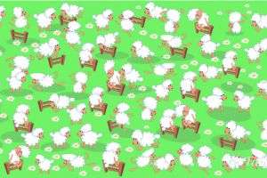 Среди этих милых барашков затесался маленький цыпленок. Найдете его за 15 секунд